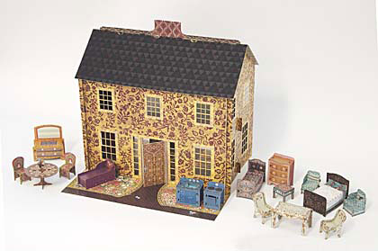 Pop-up cardboard dollhouse complete with 33 pieces of lasercut cardboard furniture.