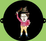 What's a Thaumatrope? Its a cardboard disc with pictures on both sides. A piece of string is tied to holes on each side. By rolling the string between your fingers the images combine. They were popularized by, and perhaps invented by, Dr. John A. Paris in London in the early 1820s. Thaumatropes did not usually display animated pictures but they can portray limited motion due to the persistence of vision principle. The human eye retains an image for approximately 1/20 of a second. Viewing the spinning thaumatrope disc the brain imagines the intervening motion thus creating a 'moving picture.' Coincidently the first Georgie Porgie, King George IV, was going insane about the same time thaumatropes were invented. Apparently he went around telling people that he'd been a soldier and fought at the Battle of Waterloo. Sounds familiar huh? |
